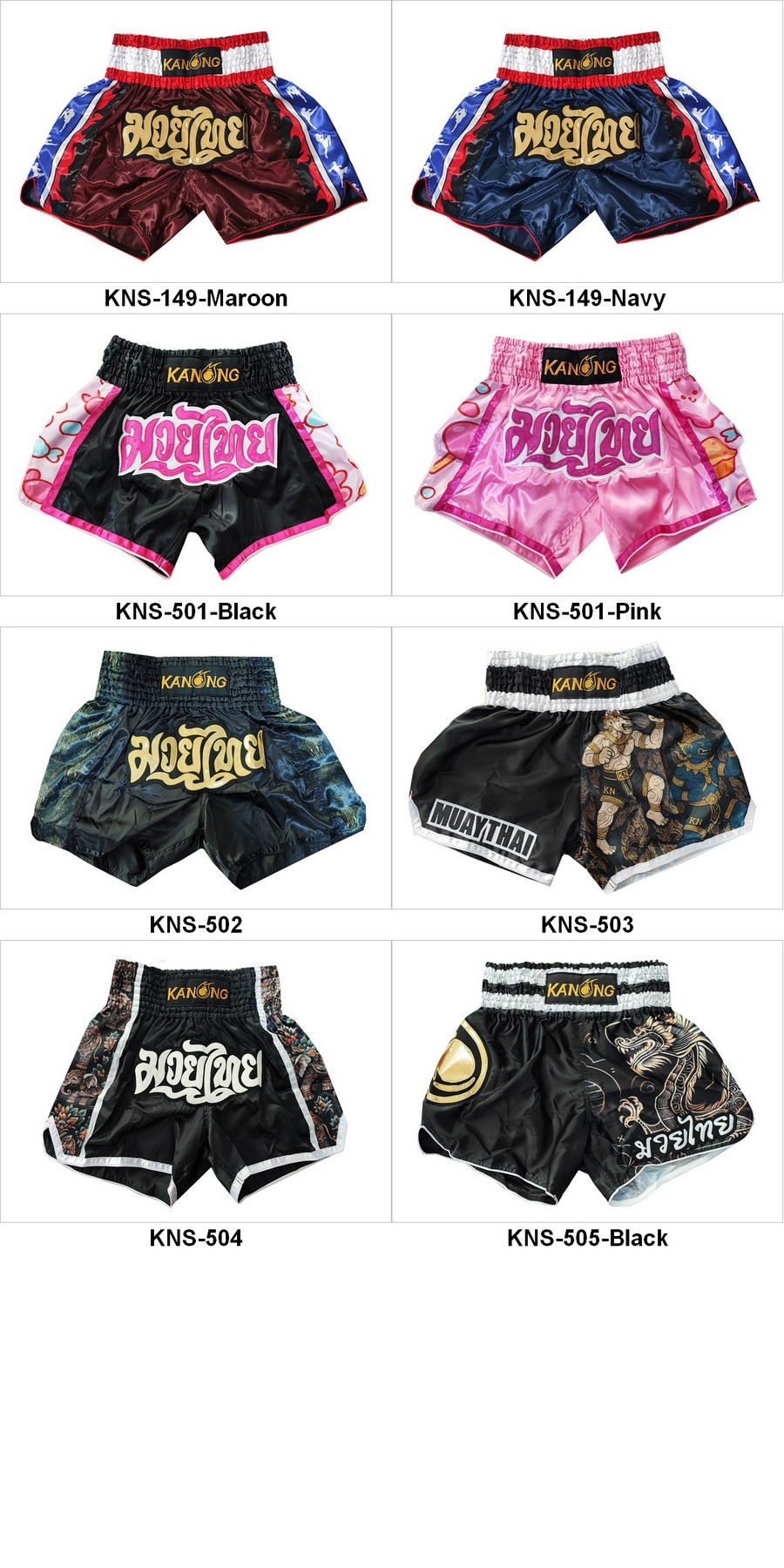 Høj kvalitet, 100% satin muay thai-shorts med stærk elastisk linning til træning og kamp, fremstillet i Thailand.